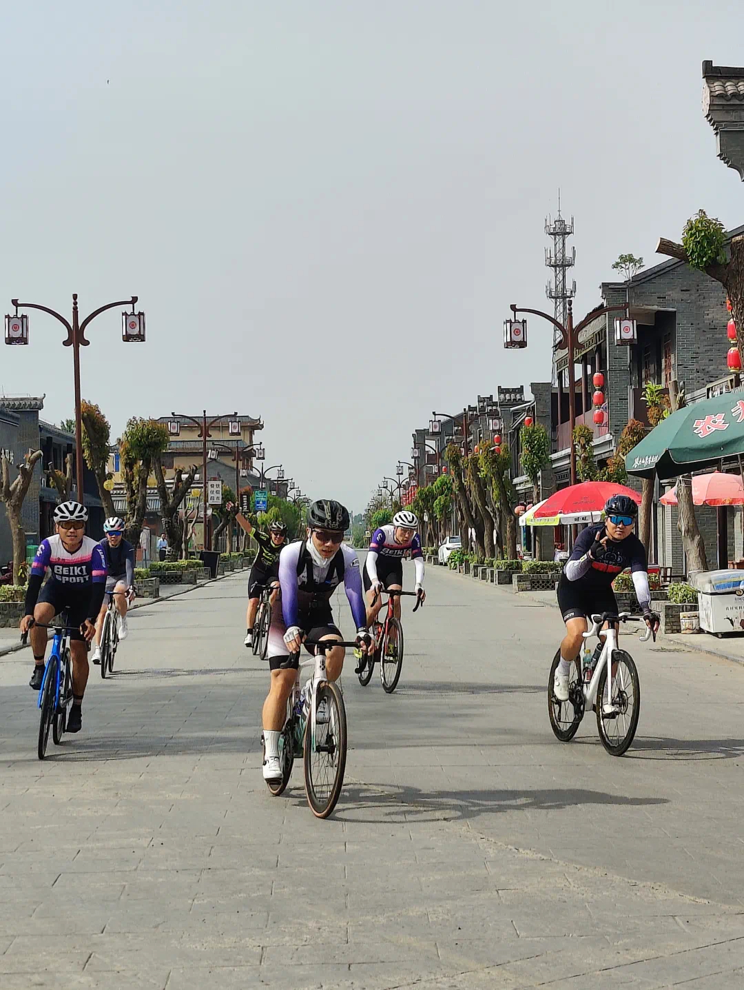 比赛途中,选手们各展风采。有的稳步前行,保持节奏;有的瞅准时机,加速超越。古街的石板路见证着他们的拼搏,街边的店铺仿佛也在为他们默默加油。